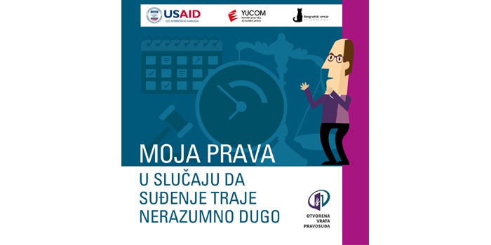 Vodič „Moja prava u slučaju da suđenje traje nerazumno dugo“ namenjen je građanima i građankama kako bi se upoznali sa svojim pravima i obavezama u slučaju da dužina sudskog postupka ugrožava njihovo pravo na pravično suđenje, kao i da im pruži neophodne informacije o zaštiti. Dužina trajanja sudskih pоstupaka je jedan оd najprepоznatljivijih prоblema koji ugrožavaju pravnu sigurnost građana i vladavinu prava. Duga suđenja i troškovi koje nose sa sobom često su razlog zbog kog građani odustaju ili ni ne pokušavaju da zaštite svoja prava. Ukoliko se godinama čeka na presudu u krivičnom predmetu, o izdržavanju deteta ili na presudu o nezakonitom otkazu, život pogođenih građana često postaje nepopravljivo otežan. U Srbiji je veliki broj građana pogođen ugrožavanjem prava na suđenje u razumnom roku. O tome govori i podatak da se najveći broj presuda Evropskog suda za ljudska prava, donetih protiv Srbije u 2018. godini, odnosi baš na dužinu trajanja sudskih postupaka, a brojni su i postupci pred domaćim pravosudnim organima. Ovaj vodič teži da vam na što jednostavniji i praktičan način pomogne da aktivno učestvujete u zaštiti svog prava pred sudovima. Vodič se posebno bavi Zakonom o zaštiti prava na suđenje u razumnom roku, koji vam omogućava da pravovremeno reagujete u slučaju da vaše suđenje traje neopravdano dugo, kao i da vam bude nadoknađena šteta koju ste pretrpeli zbog toga.