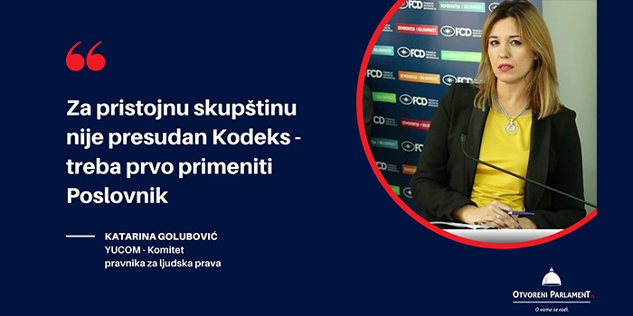 Pre nego što je Skupština Srbije u decembru na brzinu usvojila Kodeks ponašanja narodnih poslanika, Otvoreni parlament svoje mišljenje o tome iskazao je zahtevom da se predlog povuče. Pošto je Kodeks ipak usvojen ovakav kakav je ostavio je brojna pitanja da li će i kako uopšte biti primenjen. Odgovor smo potražili od predsednice Komiteta pravnika…