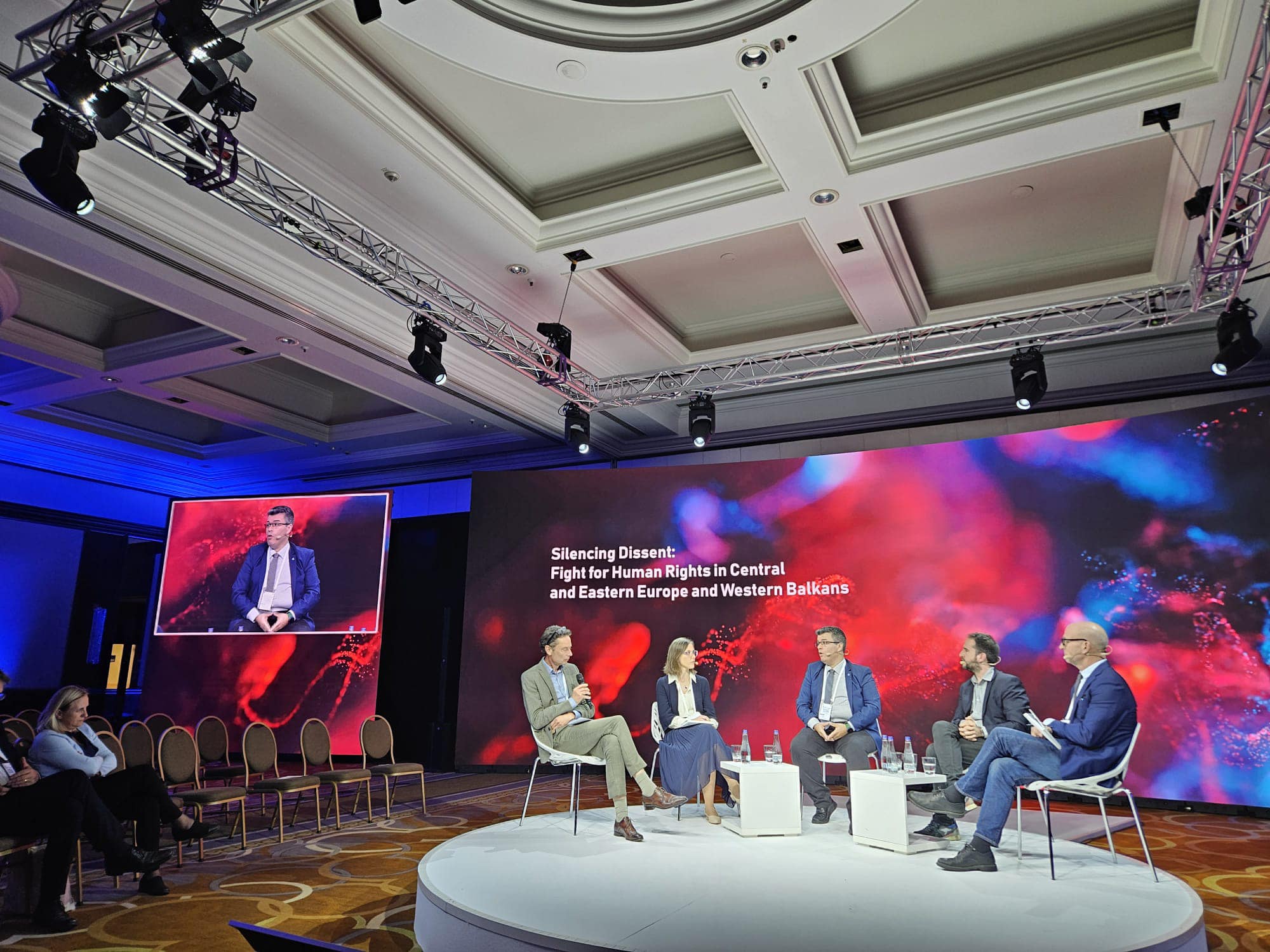 The panel Milan was a part of was all about “Silencing Dissent: The Struggle for Human Rights in Central and Eastern Europe and the Western Balkans.” Joining hands with esteemed speakers – Roberta Taveri from ARTICLE 19 Europe, Áron Demeter from Amnesty International (Hungary), and Mark B. Taylor from the Docket initiative foundation – we dove deep into the challenges faced by human rights defenders, civil society organizations, and institutions safeguarding fundamental rights.